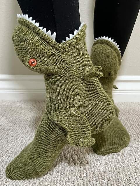 Свяжите динозавровые носки, которые выглядят так, будто они съедают ваши ноги.