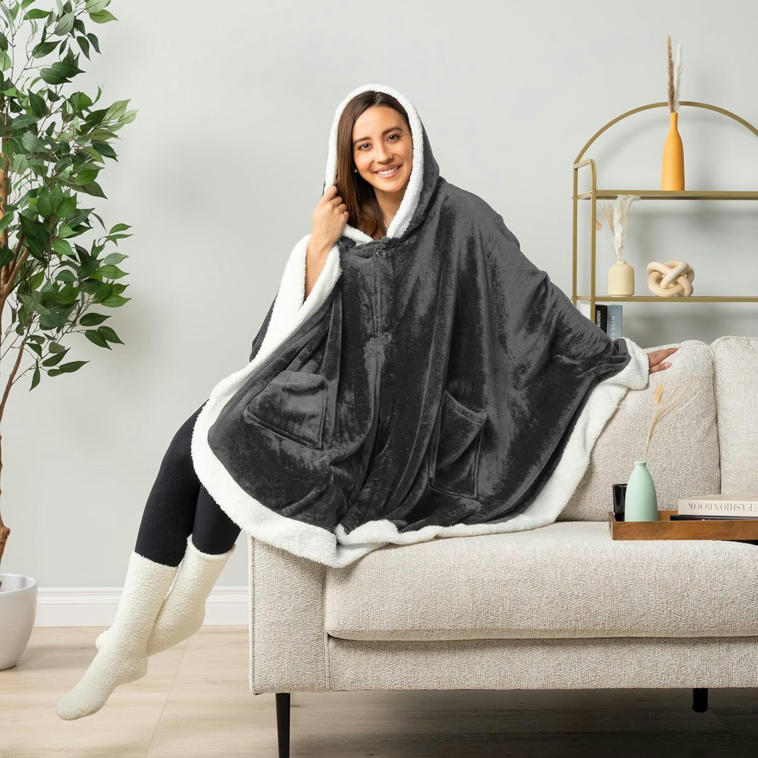 Если вы знаете кого-то, кому всегда холодно или кто просто любит расслабиться, это носимое одеяло станет чудесным и уютным подарком. Это большое пончо-одеяло, изготовленное из невероятно мягкого флиса, с капюшоном и большими карманами — идеально для закусок, телефона или пульта дистанционного управления. Оно доступно в 16 различных цветах и узорах.