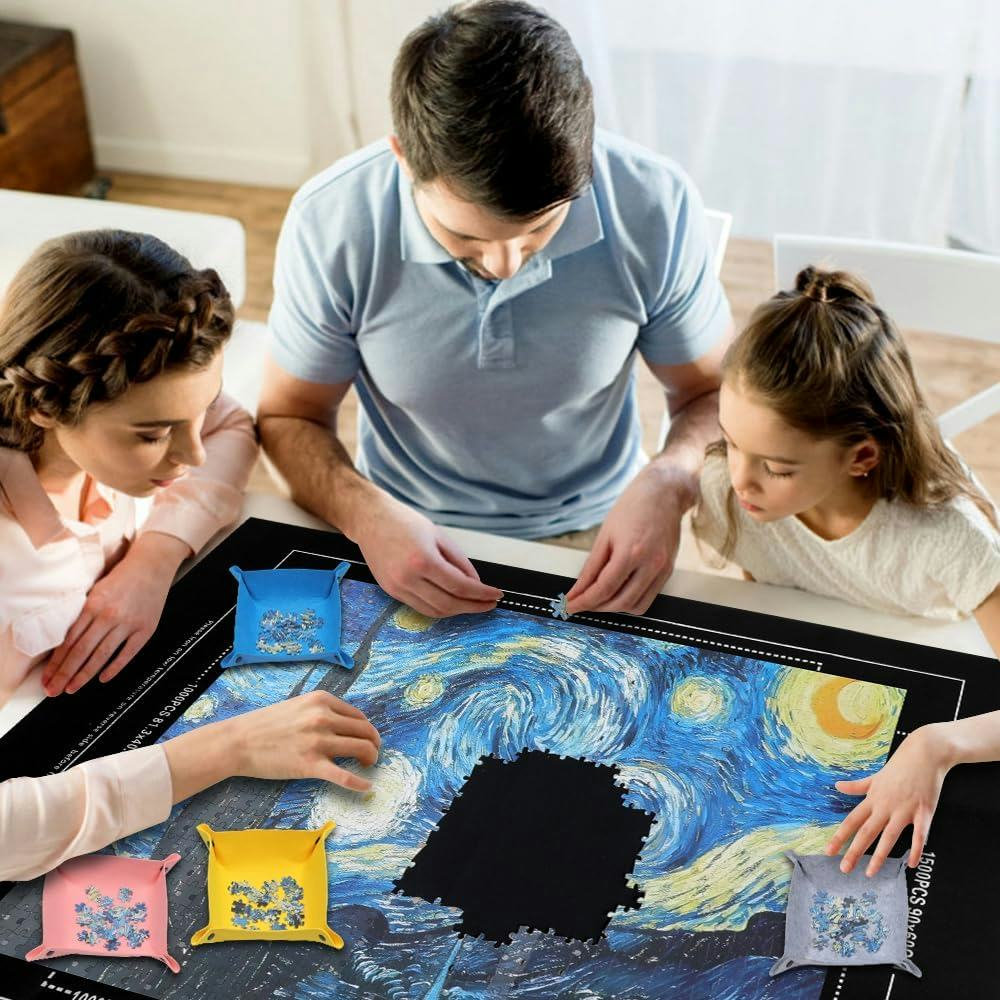 Как большой поклонник головоломок, я думаю, что этот сворачивающийся коврик — гениальное решение! Он идеально подходит для тех моментов, когда вам нужно сделать перерыв в сборке головоломки, не беспокоясь о потере деталей или нарушении порядка. Фетровая поверхность удерживает все на месте, и вы можете легко свернуть его вокруг надувной трубки для хранения. В комплект даже входят небольшие лотки для сортировки деталей и сумка для переноски всего комплекта! Он достаточно большой для головоломок до 1500 деталей, что просто отлично.