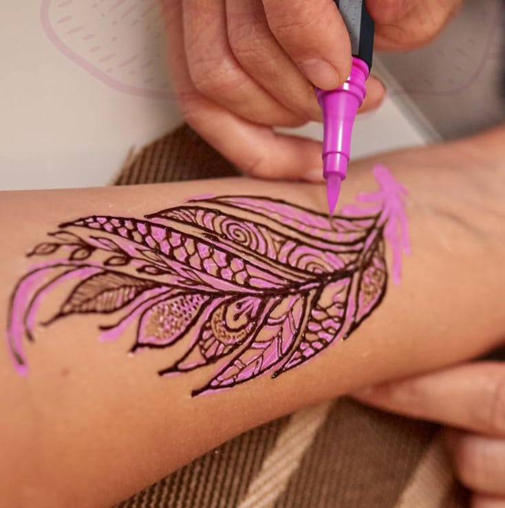 Я думаю, что мой художественно одарённый друг обожал бы эти маркеры для татуировок! Вы можете рисовать собственные временные татуировки прямо на коже, и они легко смываются мылом и водой. В комплект входят восемь ручек и десять трафаретов, чтобы помочь вам начать, но вы также можете просто рисовать от руки. Кроме того, чернила нетоксичны и быстро сохнут, что очень хорошо. Это идеальный способ поэкспериментировать с различными дизайнами татуировок, не делая настоящую!