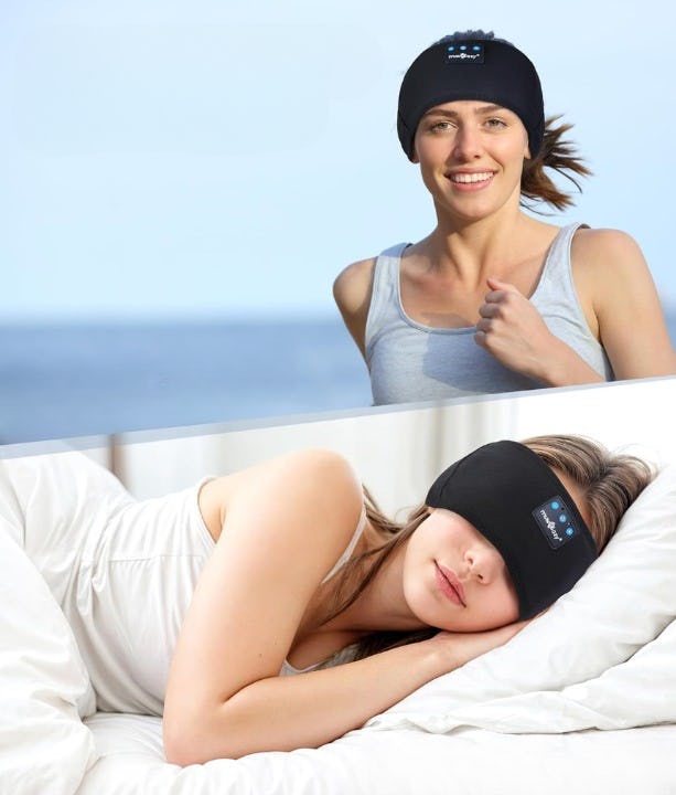 Эта удобная повязка на голову использует Bluetooth для подключения к вашему телефону, позволяя вам слушать музыку, подкасты или расслабляющие звуки. Вы можете носить ее во время сна, тренировок и повседневной деятельности. Одной зарядки хватает до 14 часов воспроизведения.