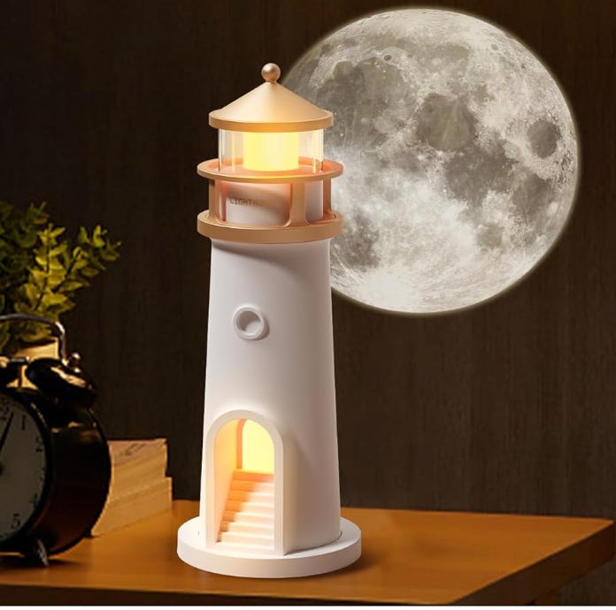 Этот проектор-маяк — отличный способ добавить уникальный декор в любое пространство, и он даже проецирует лунный образ при включении. Он работает от перезаряжаемой батареи, и вы можете настроить яркость по своему вкусу.
