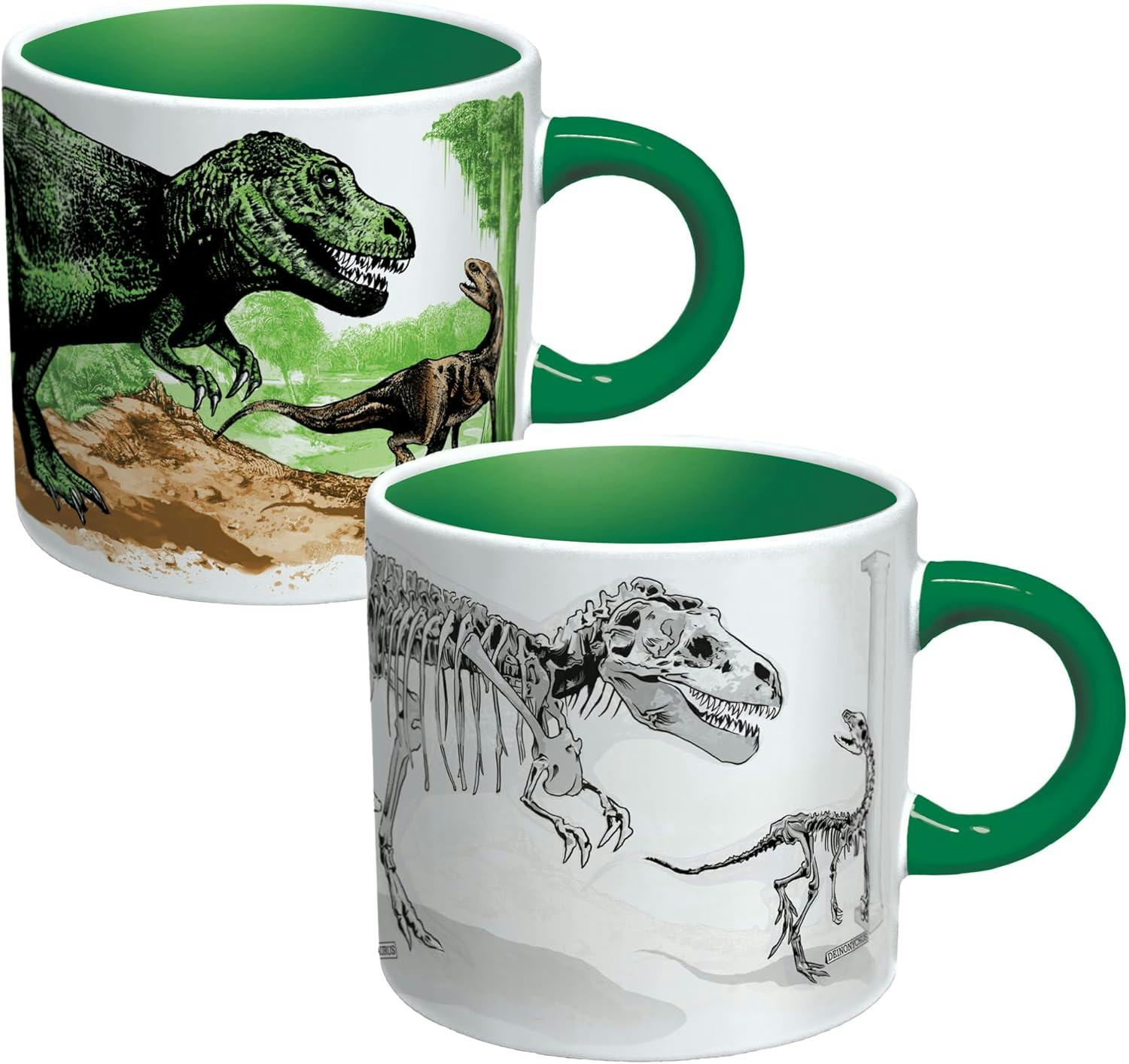 Налейте свой любимый горячий напиток (до 414 мл) в эту керамическую кружку и наблюдайте, как яркие рисунки динозавров исчезают, обнажая окаменелости внизу! Это интересный эффект. Кроме того, её можно безопасно использовать в микроволновой печи для разогрева напитков.