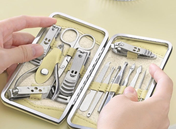 Полный набор для ухода за ногтями в удобном для путешествий футляре.
