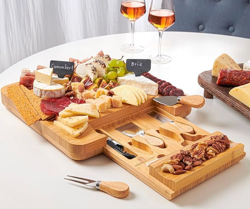 Поразите своих гостей этой мясной тарелкой! Она включает в себя все необходимое для создания красивой закуски – например, сланцевые этикетки, мел и ножи для сыра. Кроме того, она изготовлена из прочного бамбука, поэтому вы сможете наслаждаться ею долгие годы.
