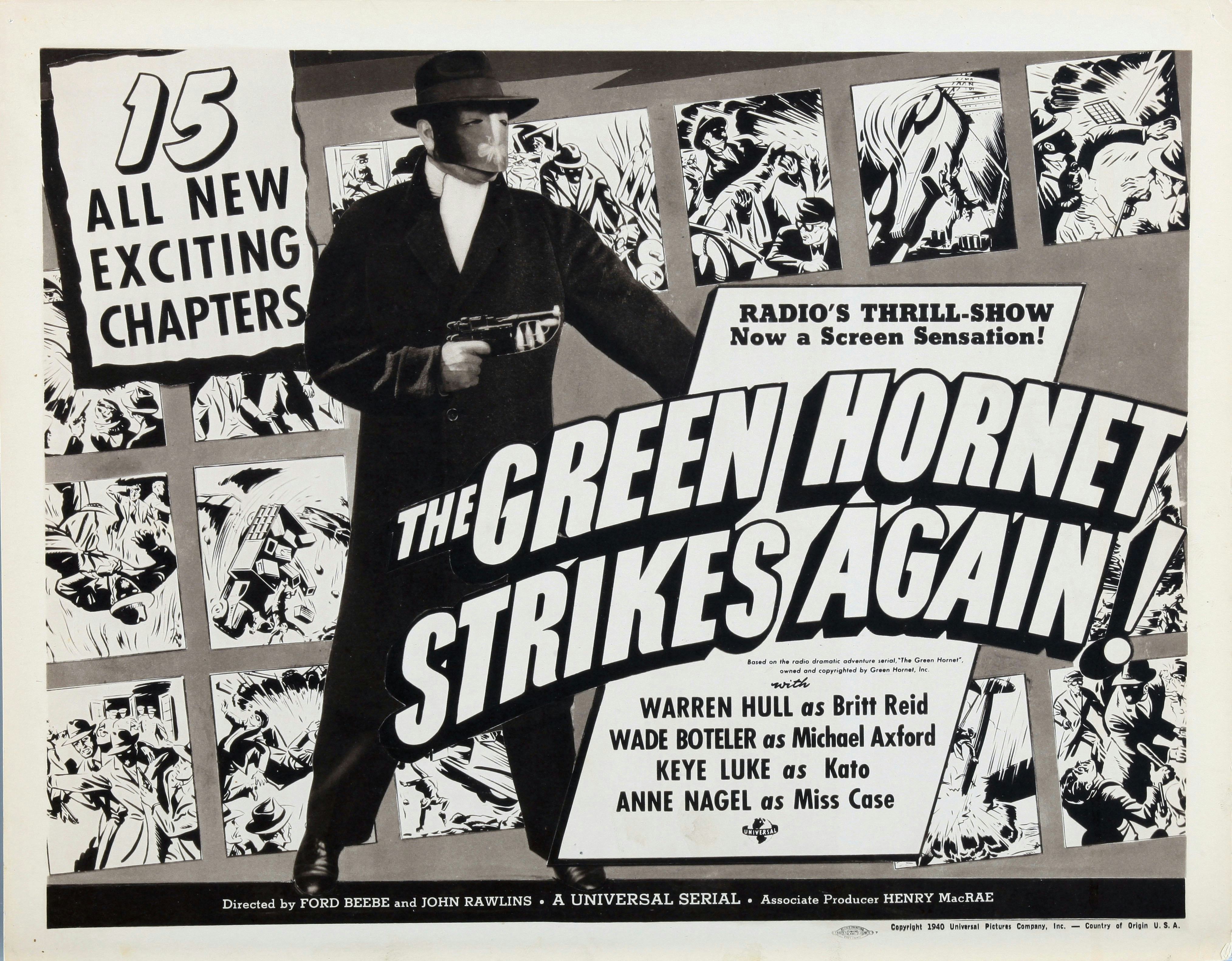 Хотя супергерои зародились в бульварных журналах и комиксах, они стали широко популярны благодаря радио и киносериалам. Персонажи, такие как Тень, приобрели известность на радио уже в 1932 году, и к 1941 году один радиогерой был настолько популярен, что уже появлялся в своем втором киносериале. Удивительно, но это был не персонаж из DC или космические авантюристы, такие как Buck Rogers или Flash Gordon, а борющийся с преступностью герой в маске по имени Зеленый Шершень. Восемьдесят пять лет назад, 4 января 1941 года, второй сериал о Зеленом Шершне с драматичным названием The Green Hornet Strikes Again! состоялся в театрах.