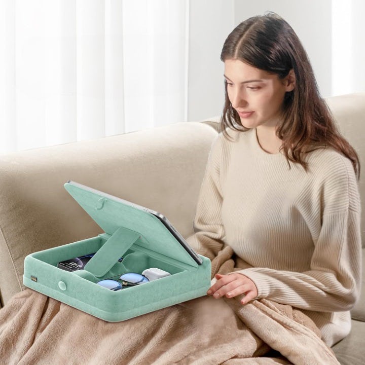 Я искал подставку, которая действительно работает везде, и эта идеальна. Металлические подставки круто смотрятся на моём столе, но бесполезны на диване. Эта подушка-подставка решает эту проблему! Ей удобно пользоваться на коленях, диване или даже в кровати. Подставка регулируется, чтобы я мог правильно установить свой планшет, телефон или Kindle. Кроме того, в ней есть небольшие карманы для всех моих вещей – зарядных кабелей, повербанка, даже моих очков и стилуса! Это помогает держать всё организованным, что для меня огромный плюс.