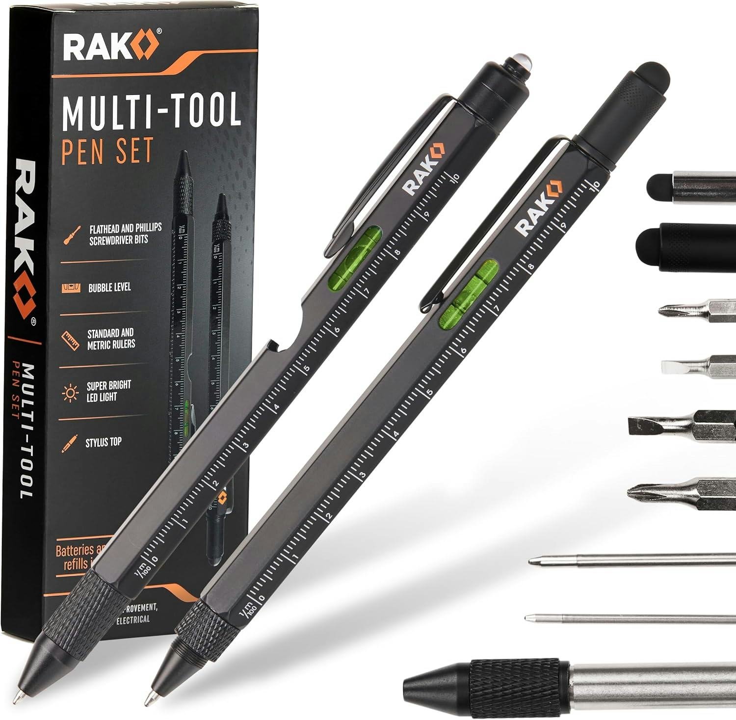 Мой парень получил на Рождество действительно крутые мультитул-ручки, и он постоянно ими пользуется! Он видеооператор и любит гаджеты, поэтому они идеально ему подошли. Они умеют многое – это и ручки, и уровни, и линейки, и стилус для сенсорных экранов, и отвёртки (как плоские, так и крестовые), и даже маленькие светодиодные фонарики. Кроме того, они сделаны из прочного алюминия и достаточно малы, чтобы легко поместиться в его сумку для камеры.