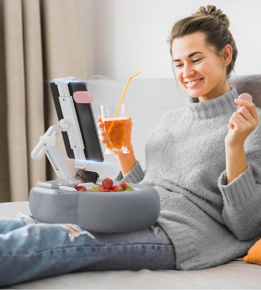 Подставка для планшета с мягкой подушкой и съёмным подносом для закусок.