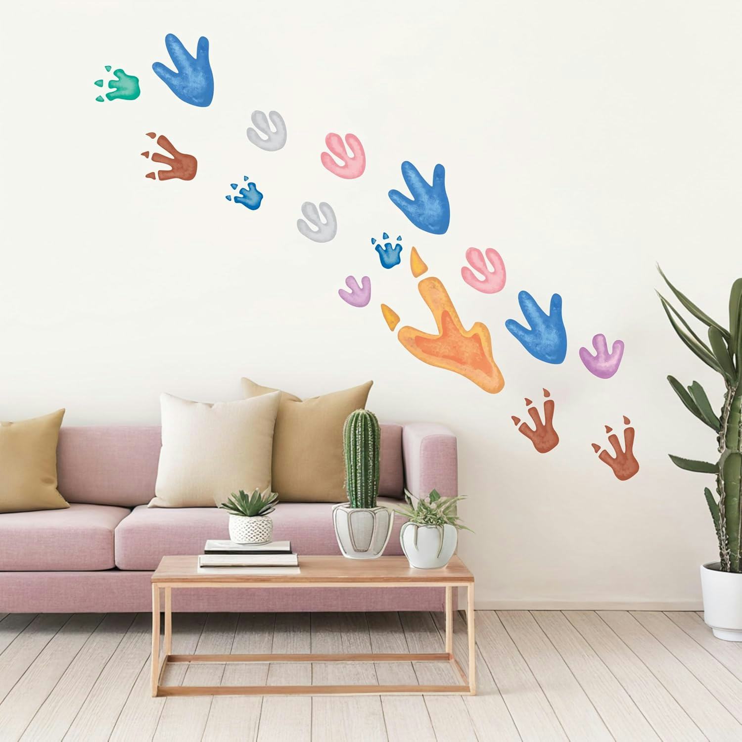 Эти следы динозавров выглядят как красивые акварельные картины, но на самом деле они сделаны из прочного винила! У них есть водонепроницаемое покрытие, и они легко приклеиваются к стенам и полам, сделанным из таких материалов, как дерево, плитка, стекло и пластик. В этот набор входит 90 следов различных цветов и форм.
