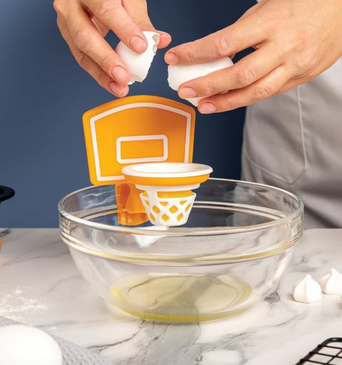 Этот разделитель желтка, выполненный в баскетбольной тематике, может показаться немного необычным, но он на самом деле работает очень хорошо! Один из рецензентов сказал, что он даже лучше других разделителей, которые они пробовали. Он изготовлен из безопасных, пищевых материалов и умело крепится к краю вашей миски. Желток остается в маленькой корзинке, пока яичные белки стекают сквозь нее, а корзинку легко снять для переноса желтка или очистки.