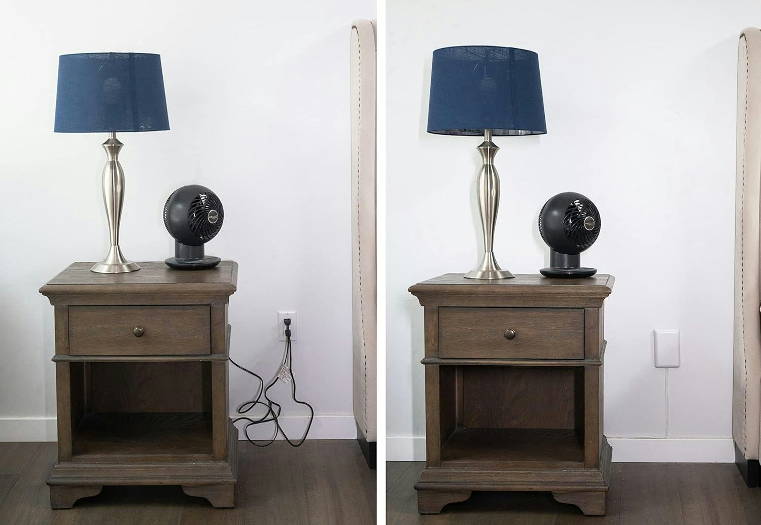 Эта сетевая розетка имеет тонкий плоский штекер, который аккуратно прилегает к стене, позволяя легко придвигать мебель прямо к ней, не повреждая ткань. Она доступна с кабелем длиной 3, 5 или 8 футов и поставляется с клипсой, которая помогает поддерживать порядок и надежно фиксировать кабель к стене.