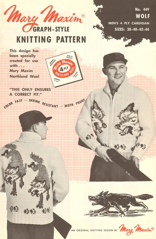 Как только Лейкер поняла, что ей нужно, она нашла схему ‘Wolf Cardigan’ 1950-х годов от Mary Maxim в качестве основы. Она планировала поменять цвета, чтобы дизайн выглядел как лисы, а не как волки. Хотя оригинальная схема стоит всего $8 на веб-сайте Mary Maxim, воссоздание точного кардигана, увиденного на экране, потребовало дополнительных усилий.