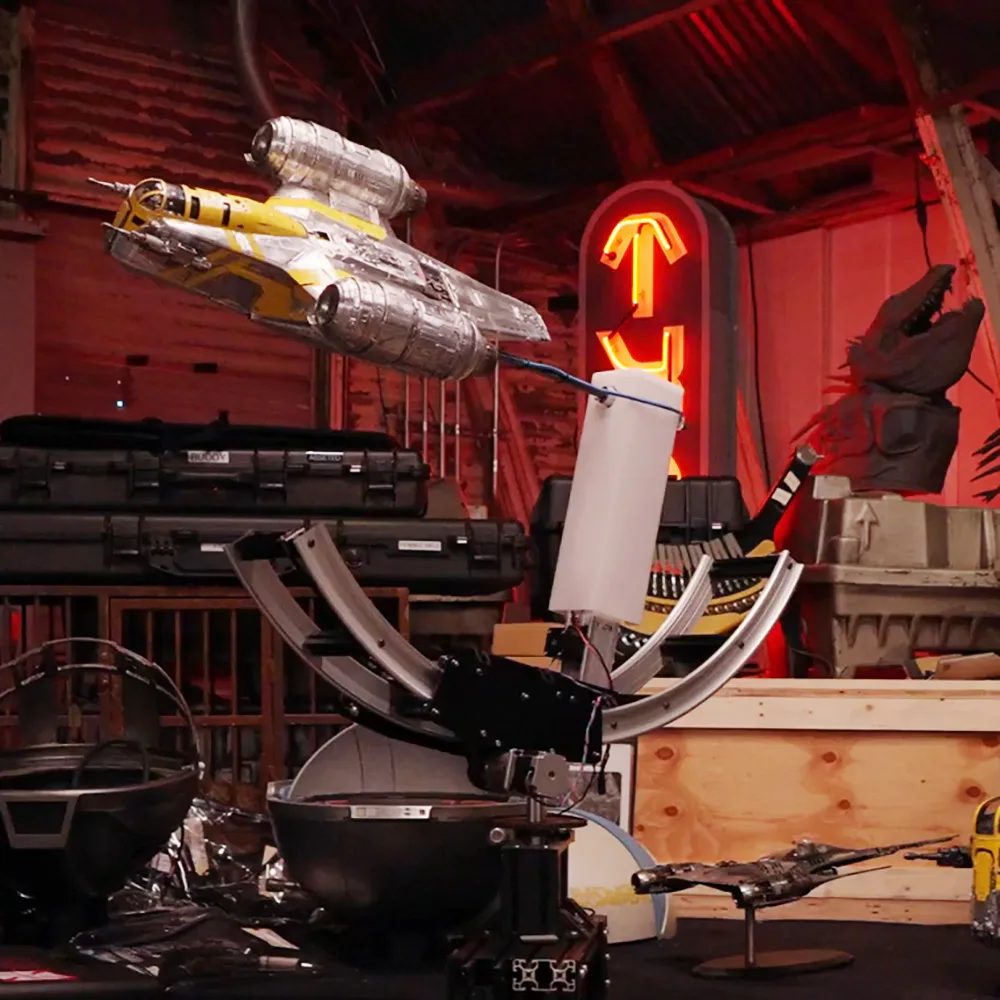 Один из любимых проектов Джона Фавро — небольшая модель Razor Crest, созданная с использованием техники управления движением, похожей на ту, которую Джон Дайкстра разработал для оригинального фильма Star Wars, A New Hope. Это не единственный ретро-эффект в сериале; The Mandalorian & Grogu опирается на практические эффекты, использованные в первом сезоне, обновляя классические приемы кинопроизводства для современной аудитории.