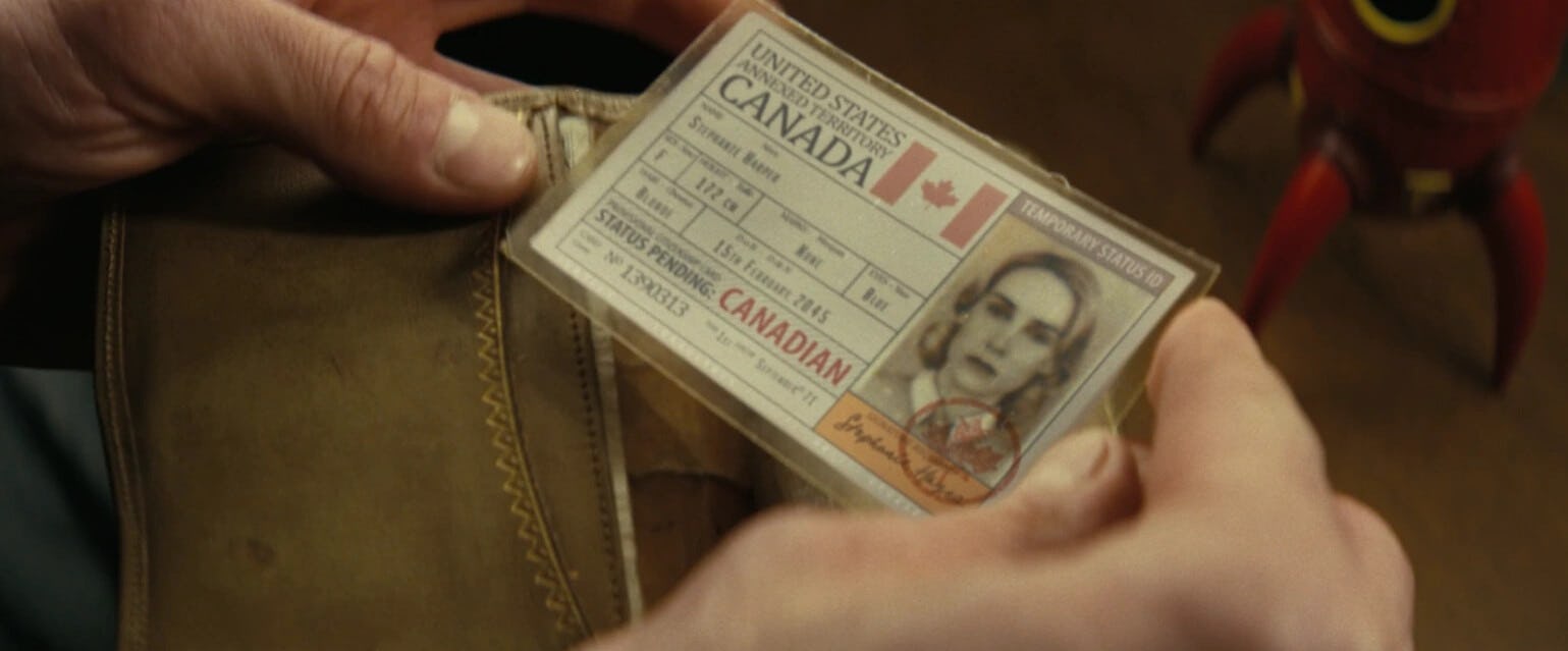 Это проясняет важное открытие из предыдущего эпизода: Чет обнаруживает скрытое пространство в ящике, где лежит кошелёк и удостоверение личности Стеф до того, как мир изменился. Удостоверение личности показывает, что она канадка, но самое удивительное – это то, как Канада описана на карте. На ней Канада обозначена как «Аннексированная Территория Соединённых Штатов.»
