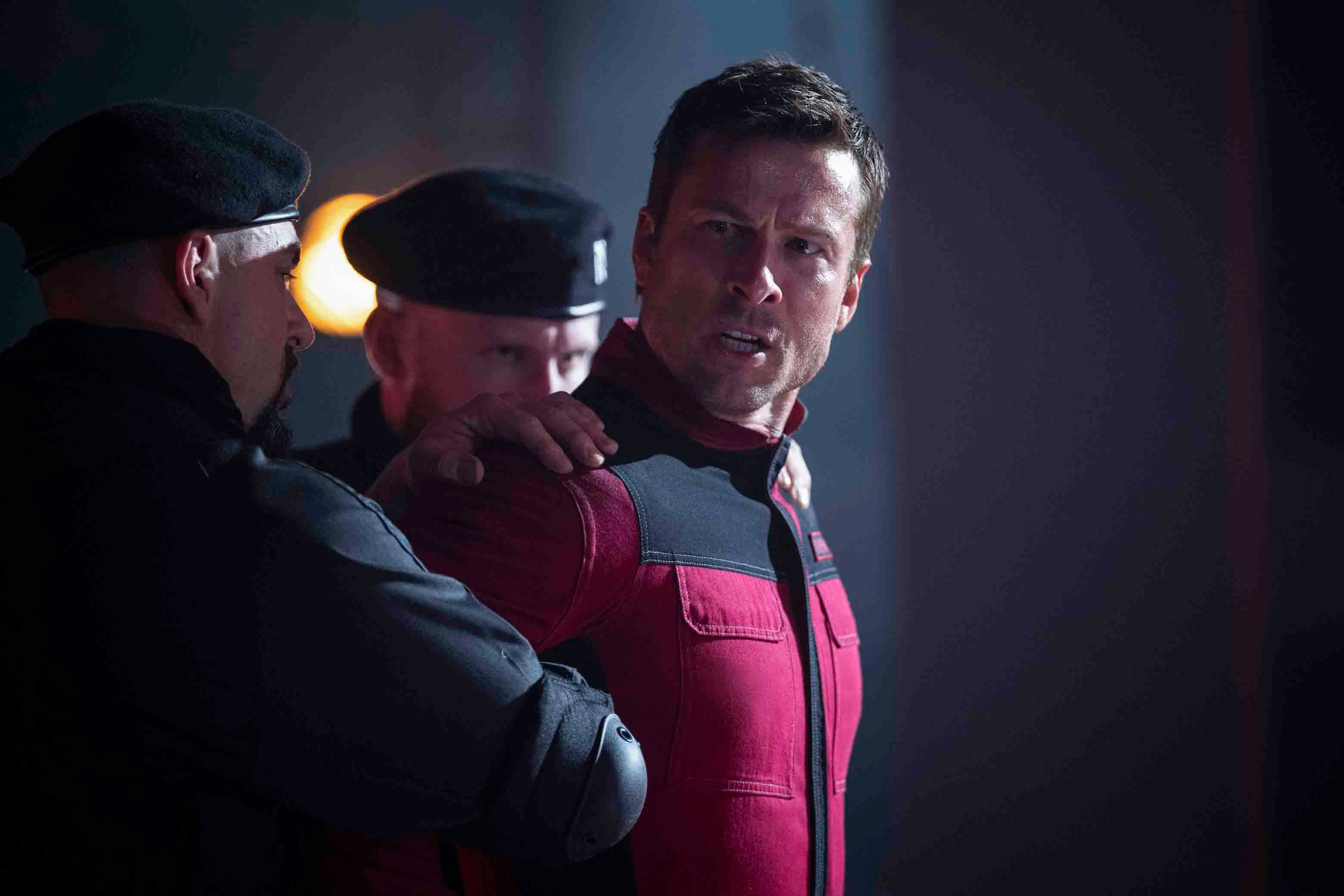 Не требуется много времени, чтобы понять, что происходит на самом деле. Мы видим Шилу в продуктовом магазине с дочерью, и она замечает эту фигуру в капюшоне, стоящую перед граффити с надписью ‘Richards Lives!’. Затем оказывается, что они обнимаются – это шокирующий момент! Как только The Running Man собирается начать новое шоу, ведущий, Бобби Т (Colman Domingo), практически толкает Киллиана на сцену. Но все быстро идет наперекосяк. Бешеная толпа, все держат таблички с надписью ‘Richards Lives!’, подавляет его, а затем, невероятно, сам Бен Ричардс подходит к Киллиану с пистолетом, направленным прямо ему в голову. Он начинает отсчет… и на этом фильм просто обрывается. Это полный клиффхэнгер!