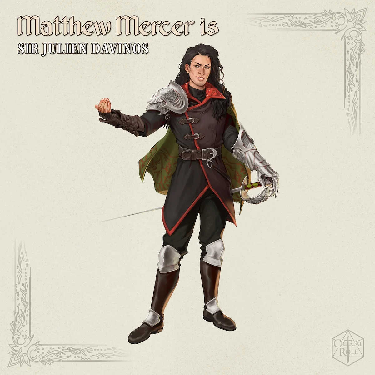 Персонаж Мэтта Мерсера в Critical Role Campaign 4, сэр Жюльен Давинос, — человек, воин/разбойник.