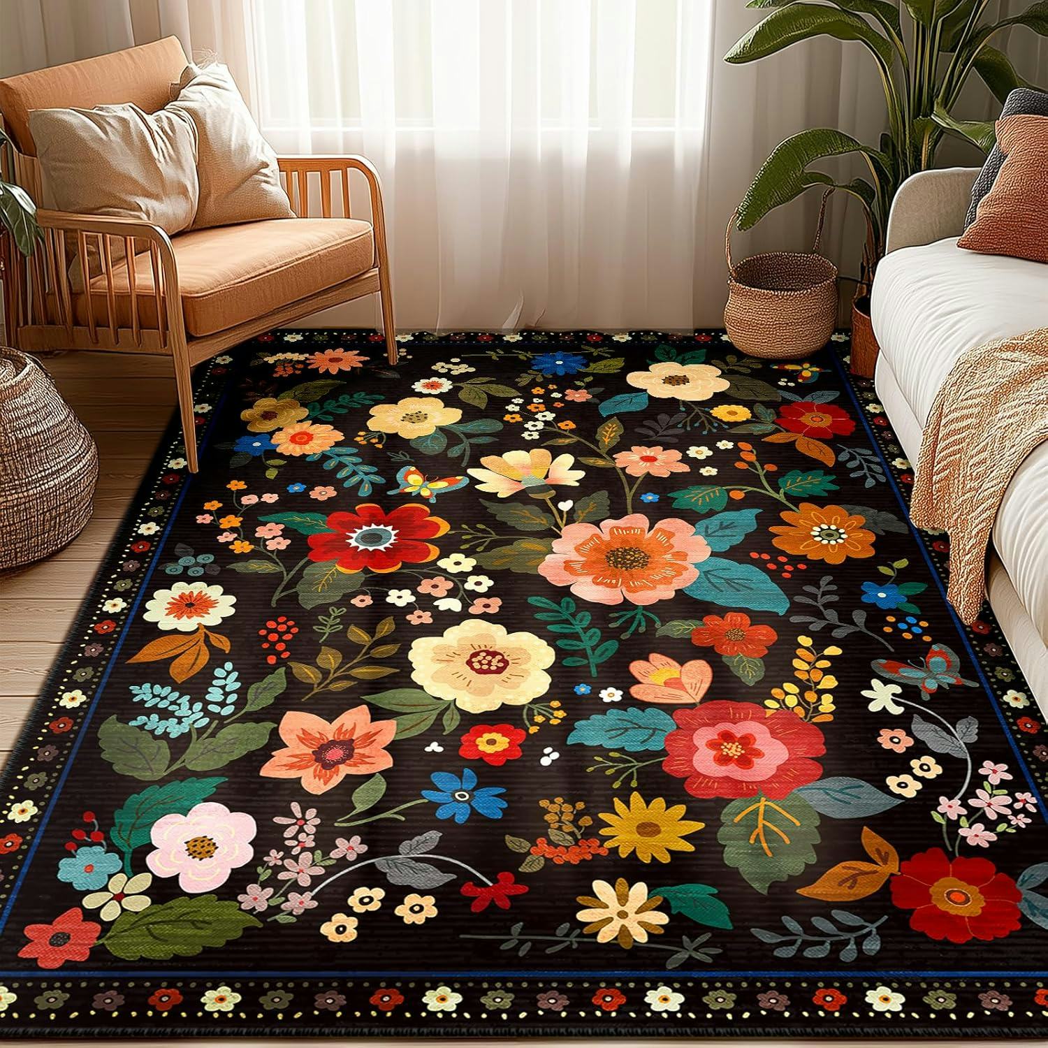 Добавьте уникальности вашим полам с помощью максималистского, машино-стираемого цветочного ковра.