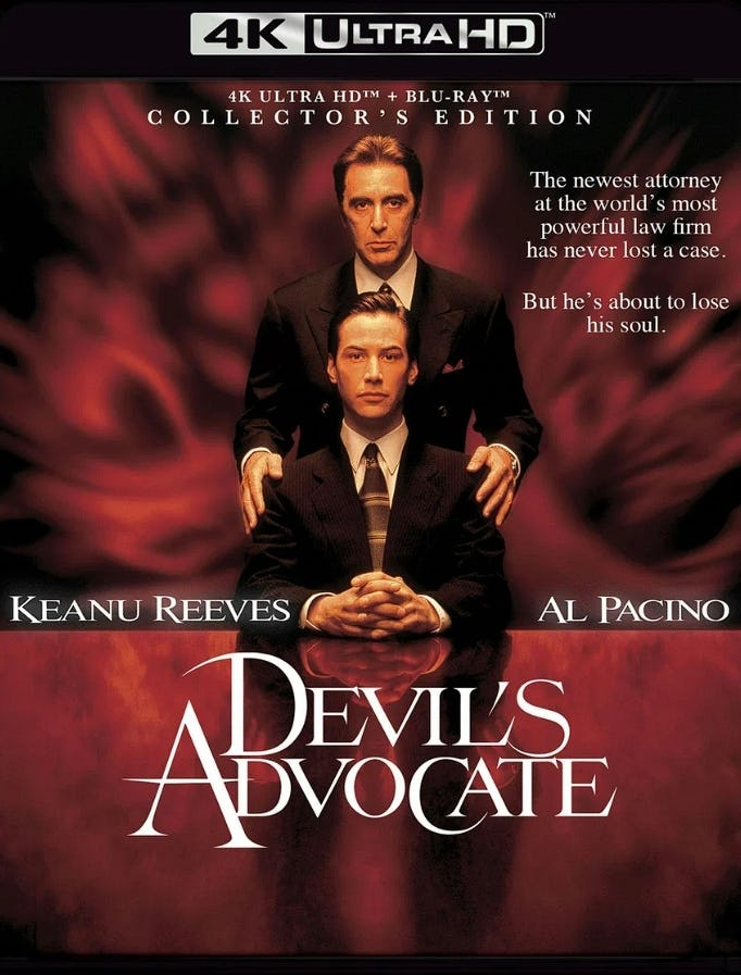 Я до сих пор помню, когда вышел фильм The Devil’s Advocate в 1997 году! Он был основан на романе Эндрю Найдермана и имел потрясающий актерский состав – Киану Ривз, Аль Пачино и Шарлиз Терон. Идея была просто гениальной: что, если бы Дьявол был очень успешным адвокатом прямо здесь, на Земле? Это казалось умным сочетанием фильмов, таких как The Firm, и классической истории о Faust, с небольшой примесью Paradise Lost для пущего эффекта. Это был действительно гладкий, чрезмерный фильм – настоящий кинематографический фрик-шоу, но одетый в супер дорогую и яркую обертку. И теперь Shout Factory наконец-то дал ему обновление до 4K, которого он заслуживал!