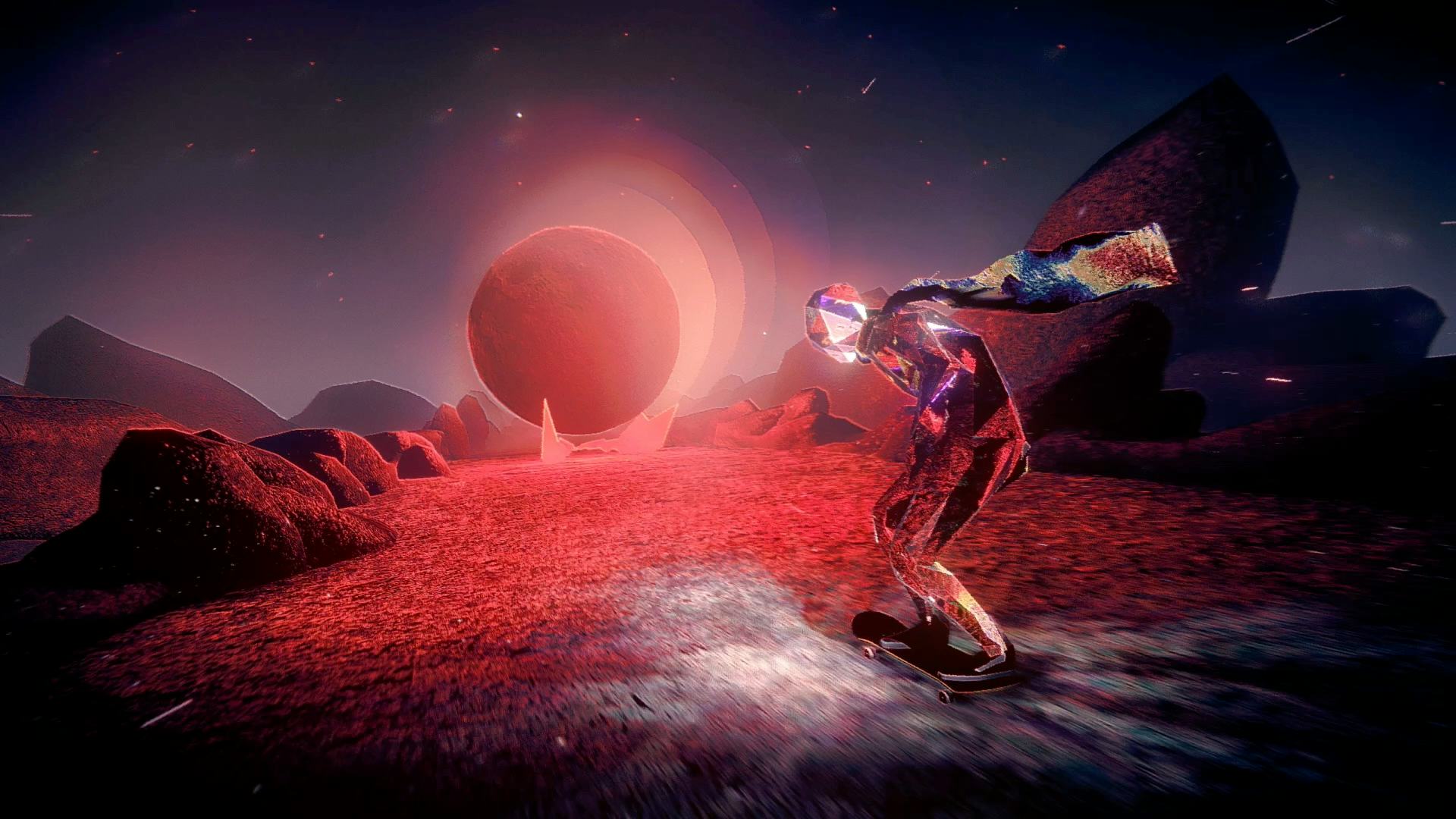 Skate Story — это игра о скейтбординге с мрачным оттенком, напоминающая классические игры начала 2000-х. Вы играете за стеклянного демона, который заключает сделку с дьяволом: получить скейтборд и съесть все луны преисподней. Если вы преуспеете, дьявол обещает позволить вам покинуть этот мир.