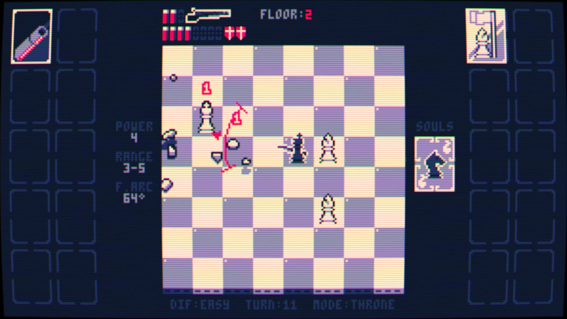 Даже простое добавление дальнобойного оружия к традиционным шахматам делает Shotgun King удивительно приятной стратегической игрой. Что действительно заставляет вас возвращаться, так это модификаторы, которые вы получаете после каждого раунда. Как только вы выигрываете на доске, вы выбираете один из двух наборов модификаторов, которые дают преимущество как вам, так и вашему противнику. Они могут улучшить ваше ружье, дать вашему королю специальные способности или добавить дополнительные испытания на доску для получения большего вознаграждения. Однако вы также усилите своего врага – возможно, предоставив ему дополнительные ферзи, увеличив его здоровье или позволив его фигурам исцеляться или атаковать на расстоянии.