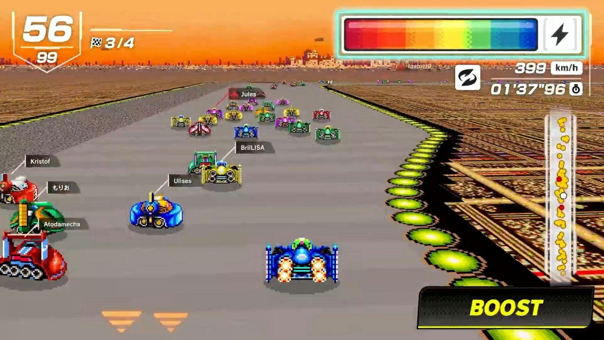 В F-Zero стремительные визуальные эффекты – это не просто для красоты – они действительно усиливают ощущение скорости, когда вы гоняете по поворотам и видите, как мир расплывается. Это ощущение сочетается с невероятно отзывчивым управлением, которое позволяет легко маневрировать вашим транспортным средством. Что делает F-Zero таким захватывающим, так это его простая цель: быть первым, кто пересечёт финишную черту, уклоняясь от препятствий и других гонщиков. Ваш корабль имеет индикатор энергии, который представляет его здоровье, и столкновение означает, что ваша гонка окончена. F-Zero легко освоить – вы можете понять основы за несколько минут – но она невероятно затягивает, постоянно заставляя вас хотеть сыграть «ещё одну гонку».