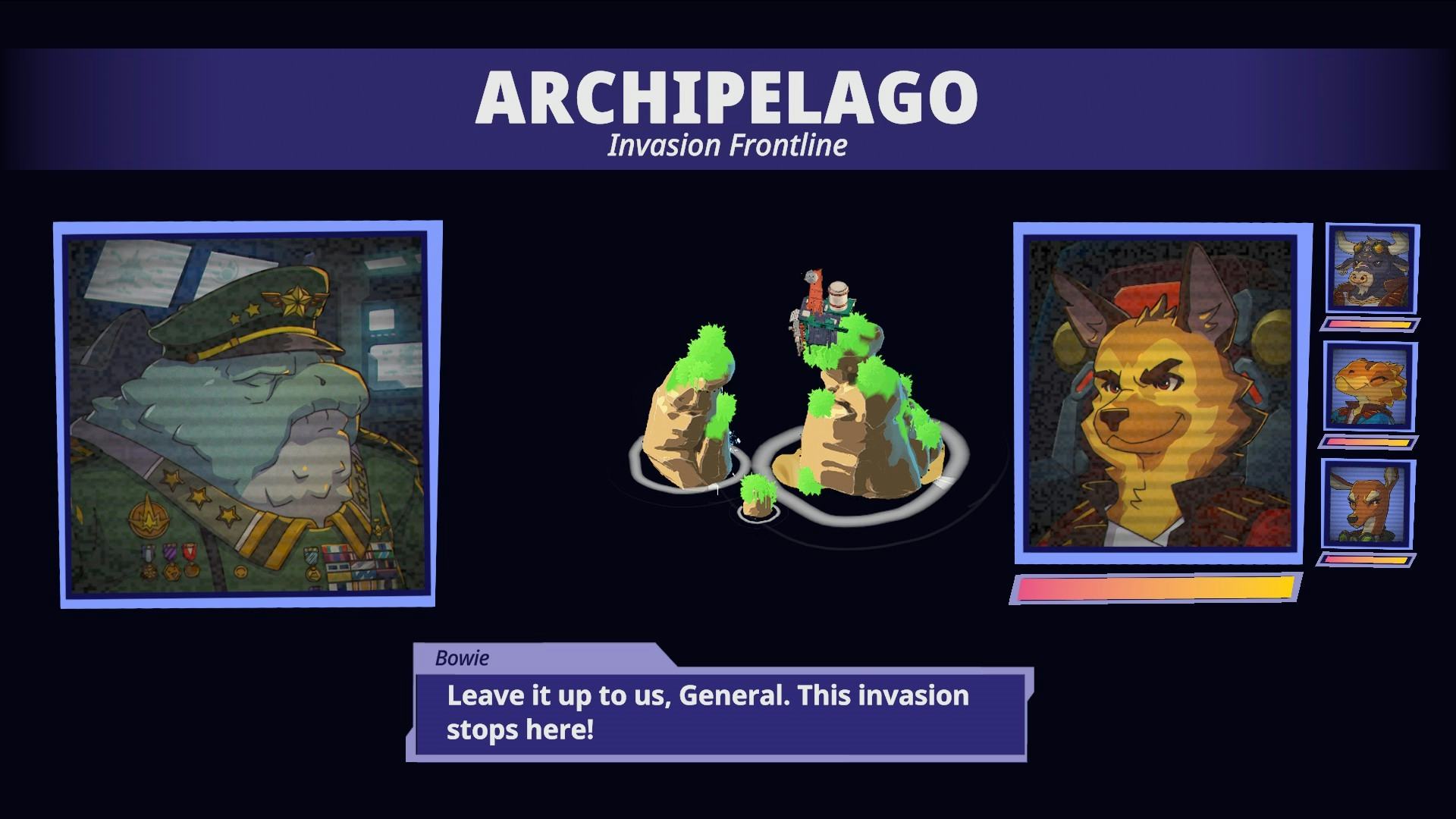 Wild Blue Skies – научно-фантастическая игра, в которой главным героем является Боуи Стрэй, немецкая овчарка, командующий отрядом под названием Blue Bombers против злодея Гримклоу. Она похожа на Star Fox, где Боуи летает вместе с тремя животными-компаньонами – одним из которых является небольшая, довольно жалующаяся рептилия. Я поиграл в обучающий режим и первые три уровня, и игра отлично справляется как с данью уважения Star Fox, так и с тестированием новых идей.