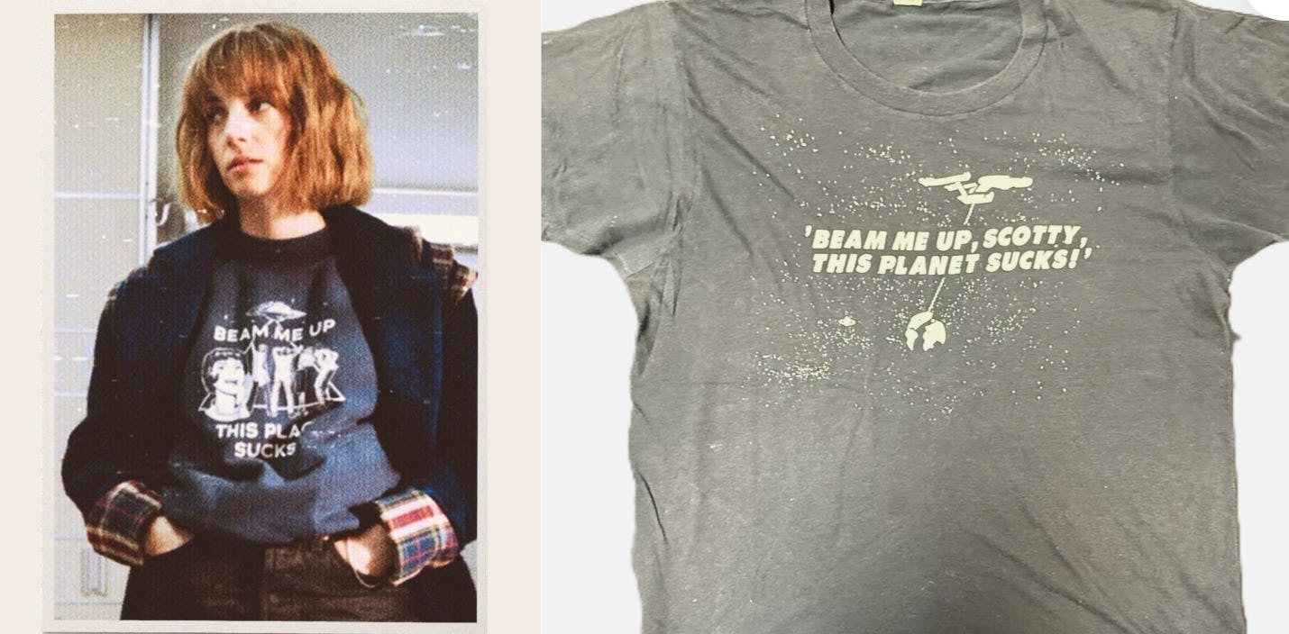 Робин носил забавную футболку в 4 сезоне, отсылающую к научной фантастике. На ней было написано «Beam Me Up. This Place Sucks» и был изображён винтажный НЛО. Это явная отсылка к Star Trek, но в ней избегается использование каких-либо изображений Star Trek или упоминание шоу по имени. В конце 80-х популярной версией этой шутки была футболка с надписью «Beam me up, Scotty, there’s no intelligent life here.» Тогда даже существовали футболки с Enterprise и фразой «Beam me up, Scotty, this planet sucks.» Важно включить «Scotty» – это ключевой момент шутки!
